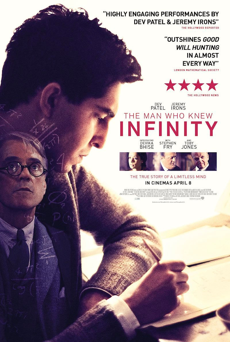 Quite a quiet entry for 2016 and little is known about the people behind this movie. Possibly Director Matt Brown's first major feature film. Definitely the major breakthrough he deserves. I get the feeling the stars wanted to be part of this as oppose to being casted. It's did really well at the film festivals across the globe. Slumdog Millionaire Dev Patel plays, not just any know-it-all genius this time, but the incredible, tragic, mathematician Ramanujan (I can't pronounce his first name Srinivasa) who contributed extraordinary discoveries to the world of mathematics. He's the genius they reference in Good Will Hunting. Patel is brilliant giving his usual iconic dumbfounded express to brilliance. Though this isn't any Will Hunting or John Nash (A Beautiful Mind) Even though Irons and Marvel's Dr. Zola, Toby Jones play other key great fellows of the Royal Society, Hardy and Littlewood; we can't really comment on how accurate they play their parts. But they're believable and Irons unsurprisingly delivers especially at the end. There was a danger the film was becoming more about Hardy than Ramanujan but actually, looking back on it, it's more about Ramanujan and centred greatly around their struggling relationship. The film introduces Devika Bhise who reminds me a lot of Rosario Dawson, and even though she is good I'm not sure it's enough to launch her career. I thought the mother was also very good. The film is full was excellent performances, conveying the characters very well even in the little scenes they share. The locations look very impressive and I don't doubt they're all filmed on location at Trinity College, Cambridge and even Ramanujan's home in Madras. Though there is nothing to confirm this. It's an interesting score as well, that's transforms from something like Talvin Singh in the beginning to something more classically European by the end. No one is solely credited for the score but it seems it was a collaboration. It's a good film though nothing really original done here but it's a good tribute to Ramanujan with an inspiring script. A good film for biopics fans.